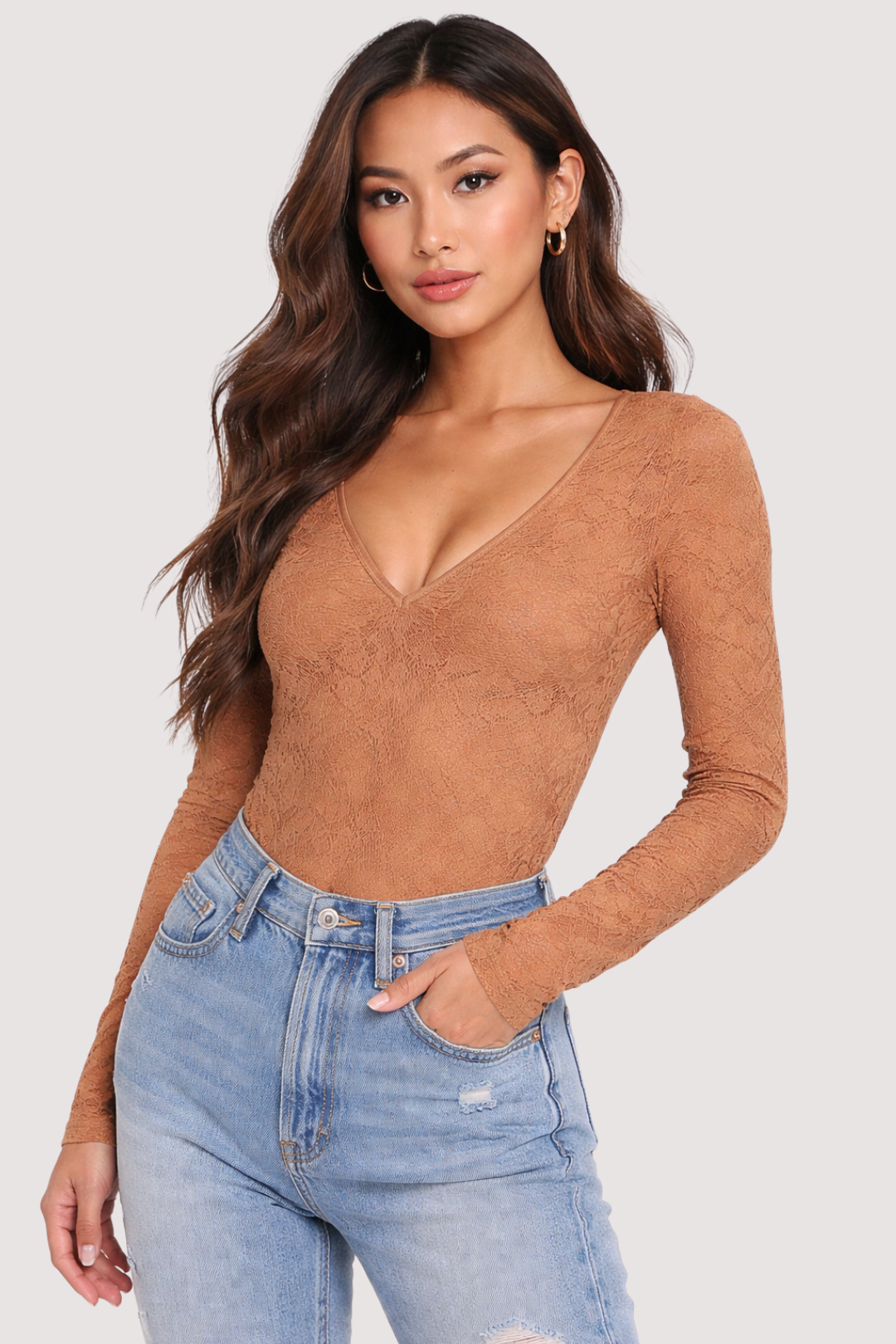 LACE BODYSUIT - MOCHA